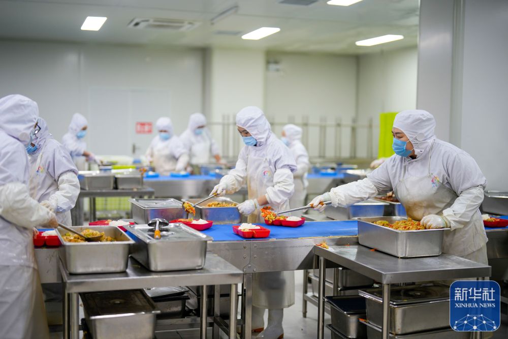 12月5日,乐亭县一家餐饮企业的员工为学生午餐配餐。