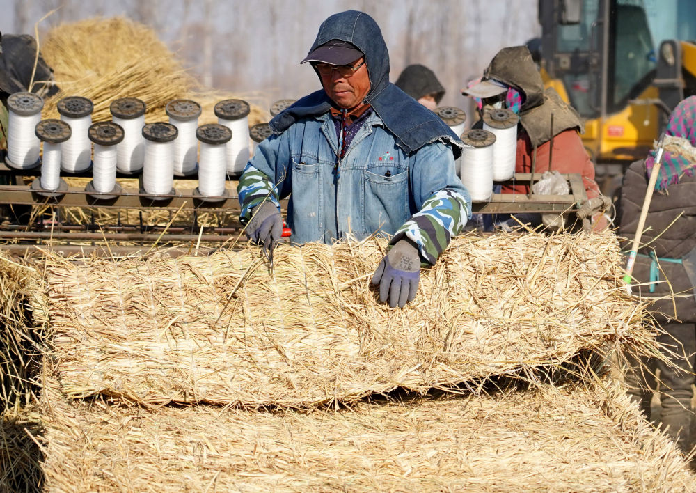 近年来,河北省唐山市丰南区立足当地稻草资源丰富的优势,大力实施稻草综合利用富民增收工程,引导农民回收稻草加工草帘、草绳等稻草制品,既保护了生态环境又增加农民收入。 新华社记者 杨世尧 摄
